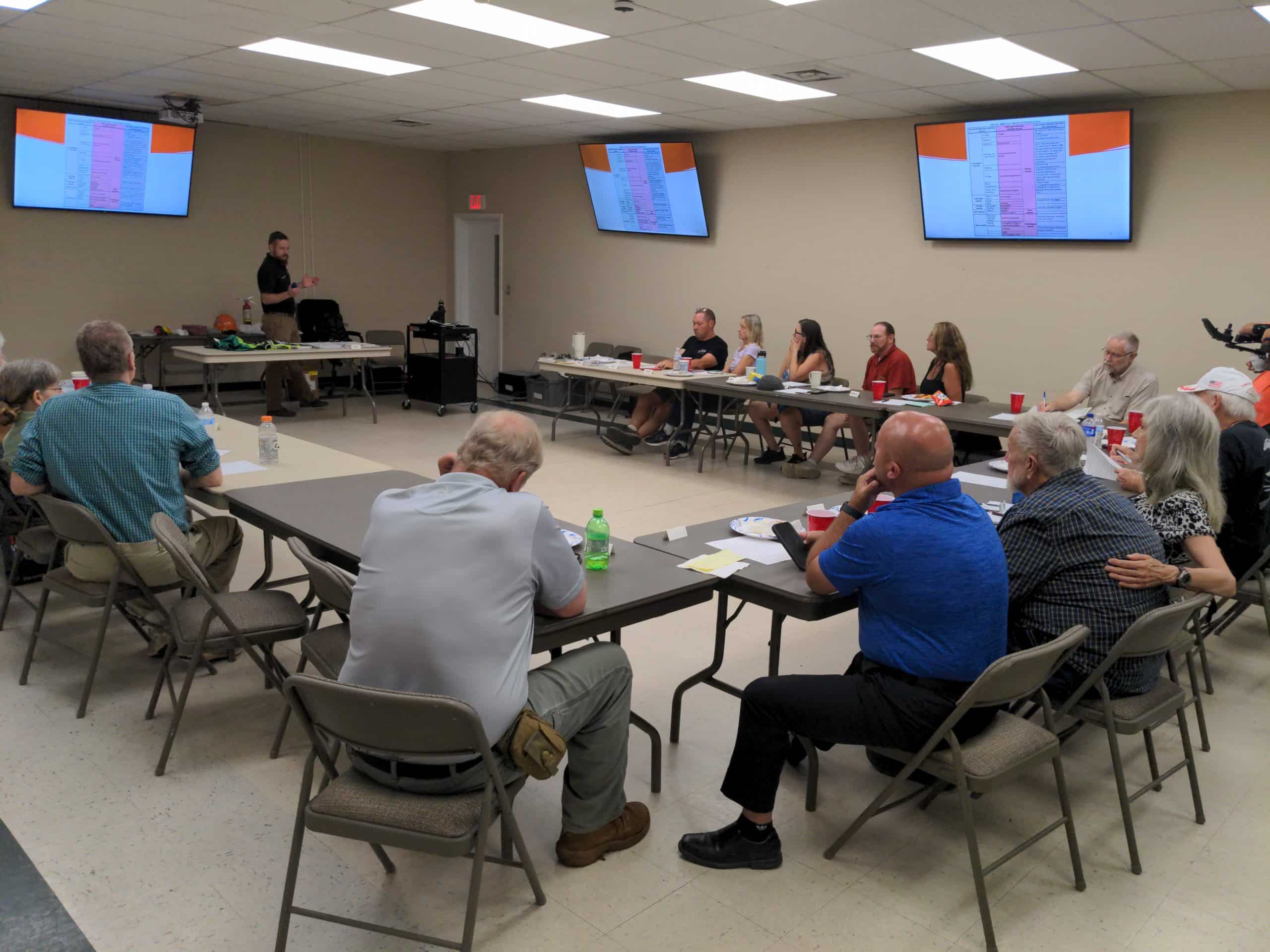 Each month Rutherford County CERT strives to provide classes on how to deal with disasters that could effect you and your family, your neighborhood, our county or the country. Our classes have included: how to stop severe bleeding, home defense from a home invasion, Ham Radio, using personal drones after a disaster, using an AED – Defibrillator, Meshtastic Communications, Land Navigation, Bug Out Bags, Nuclear Biological and Chemical Defense, Situtaional Awareness, CPR Class, Avoiding Abduction, Retreat/Wildland Firefighting, and Electrocution. (See our Classes link in the menu.)